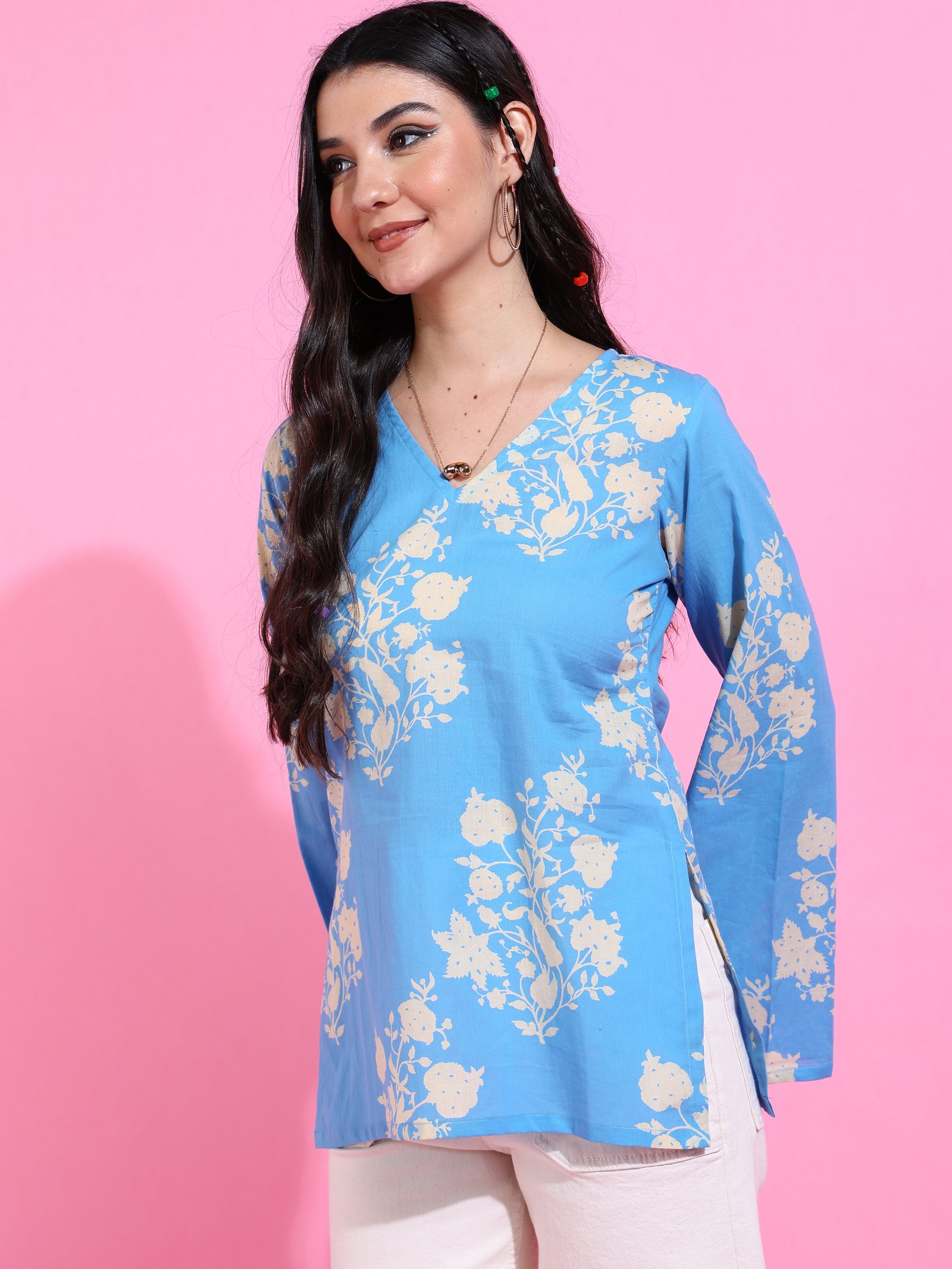 Elegant and refreshing, our Blueberry Bell Sleeve Kurti is crafted in a soothing blue shade with delicate floral patterns. Designed with graceful bell sleeves and a flattering V-neckline, it’s perfect for casual outings, festive gatherings, or everyday chic styling.