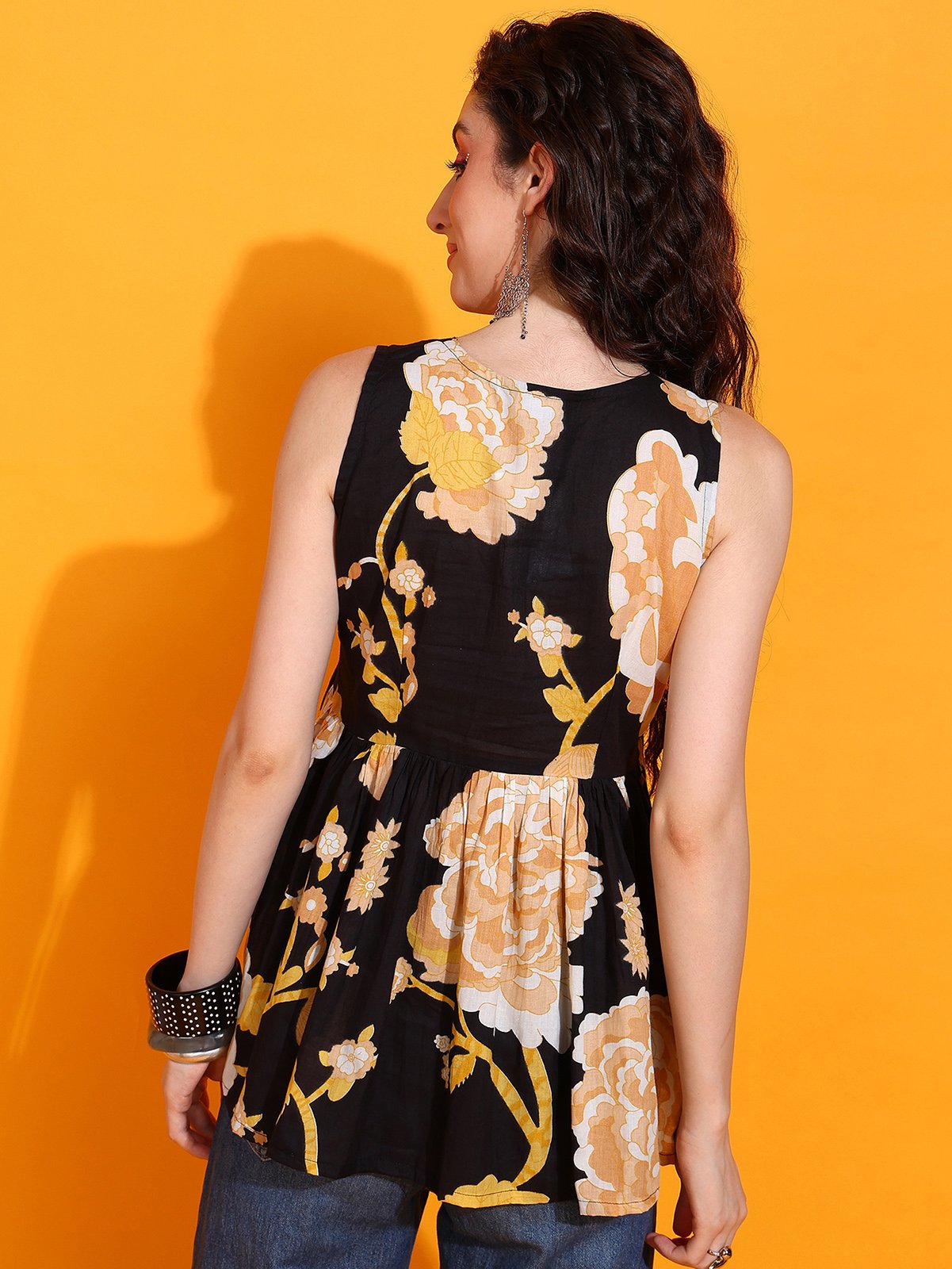 Add a touch of sophistication to your ethnic wardrobe with the Kohira Sleeveless Peplum Top from Senyora. Featuring a tailored peplum silhouette and a sleeveless design, this top blends contemporary style with traditional charm.