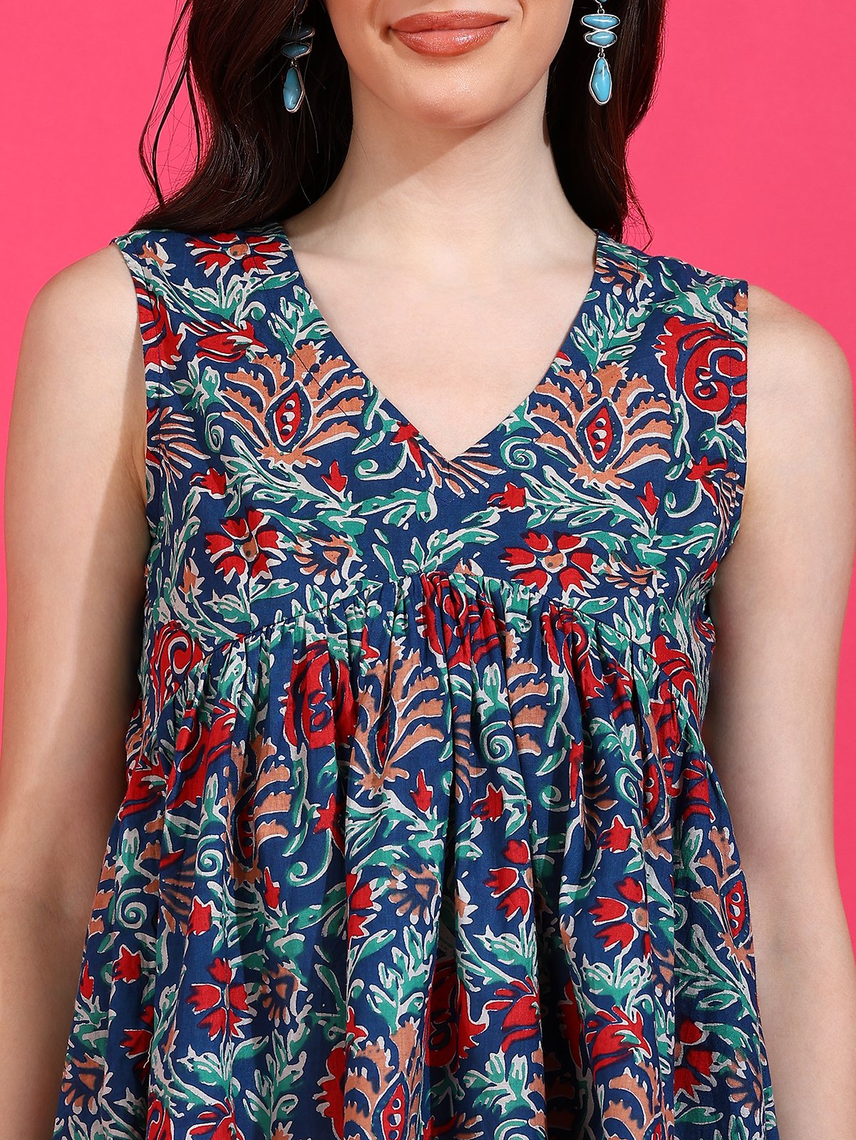 Sleeveless V-Neck: The sleeveless V-neck cut is perfect for warmer weather, beautifully framing the collarbones and providing a cool, comfortable fit.