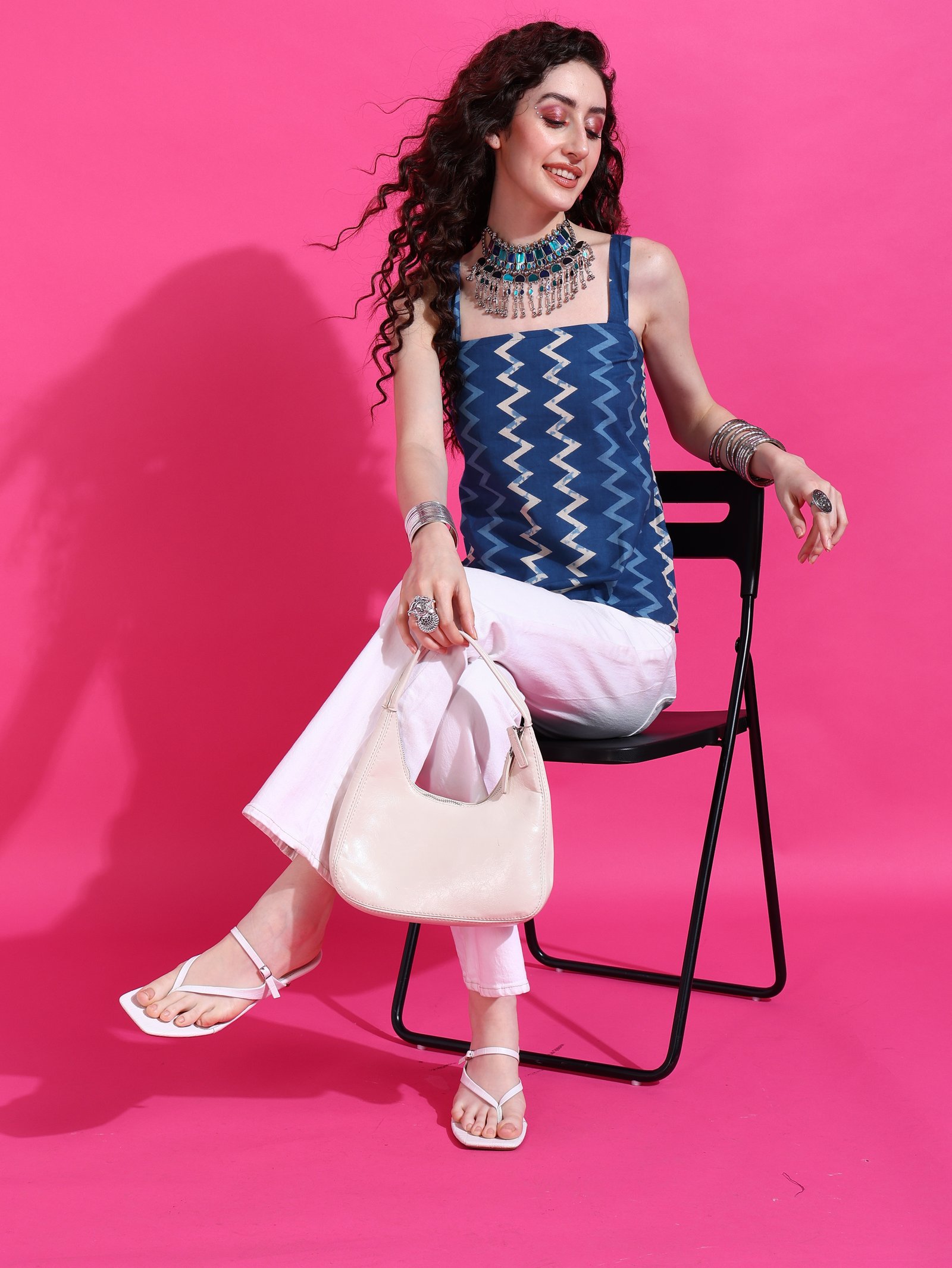 The Neeltara Indigo Strappy Top brings together comfort and charm with traditional handblock prints in a breezy, modern silhouette — your go-to summer top for effortless style.