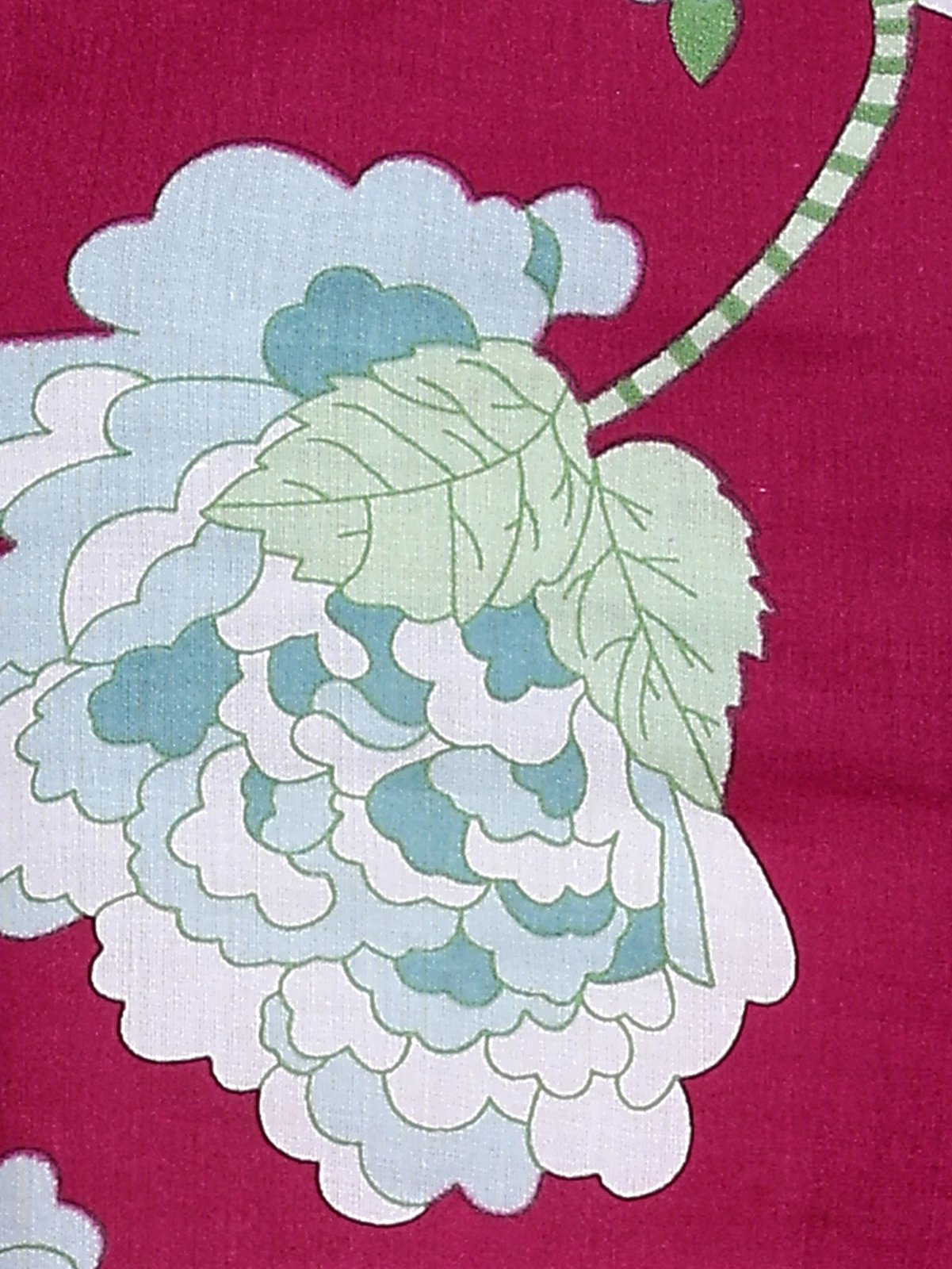 Jewel-Toned Floral Print: The top features a dramatic floral and leaf pattern in contrasting blues and creams on a deep magenta pink base. This print is vibrant and luxurious.