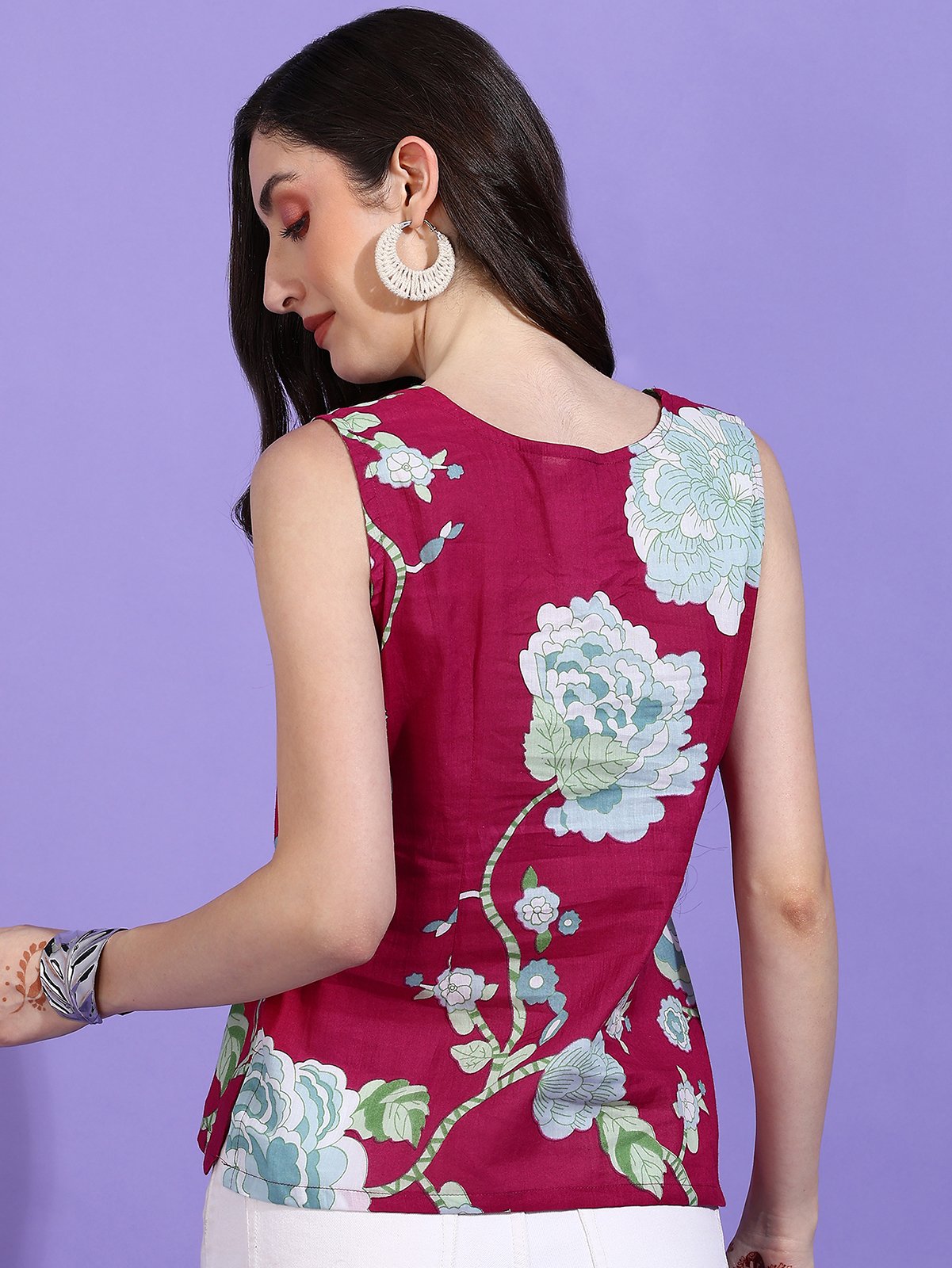 Shop the Senyora Rubira Magenta & Teal Floral Print Sleeveless Tank Top today and infuse your everyday wardrobe with dramatic color!