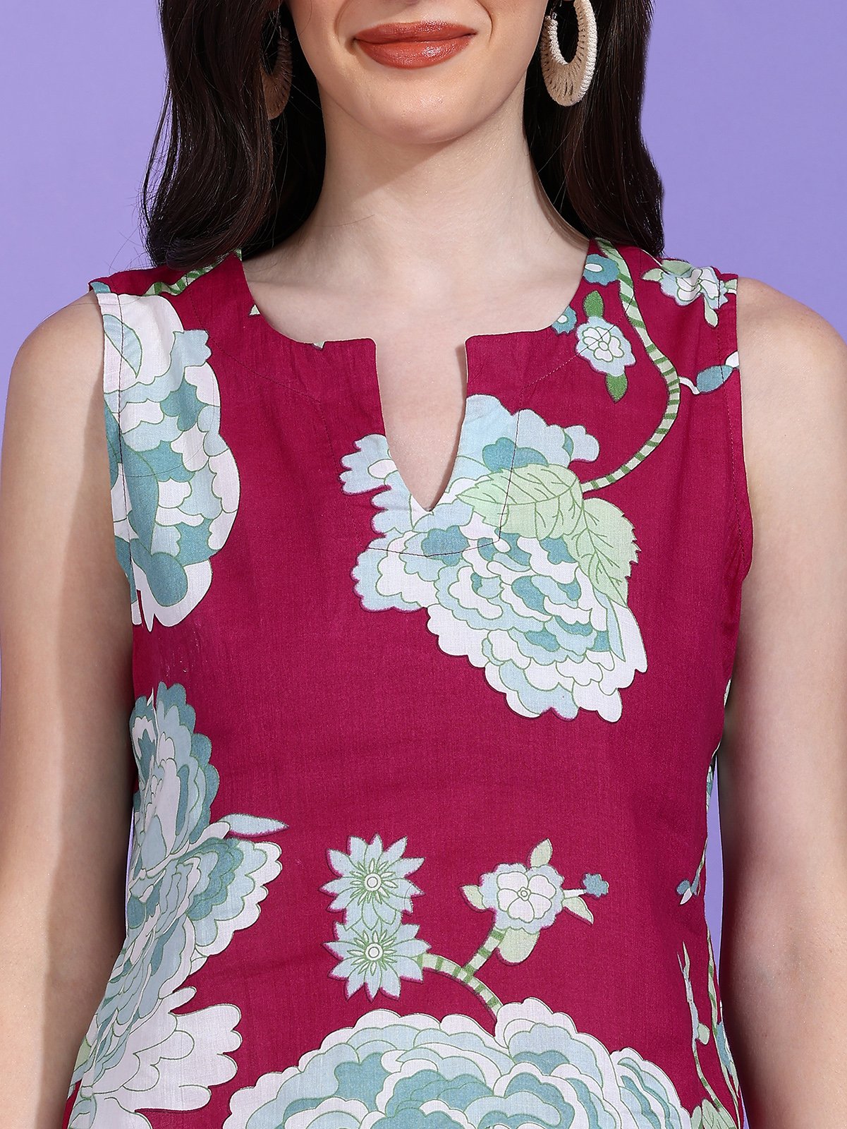 Introducing the captivating Senyora Rubira Magenta & Teal Floral Print Sleeveless Tank Top, a beautiful piece from the Rubira collection that offers a perfect mix of rich, jewel-toned color and comfortable, modern styling.
