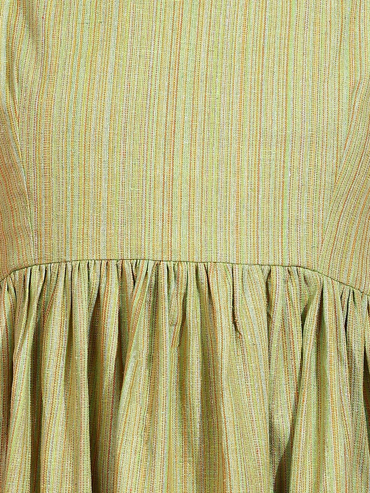 Soft Pista Stripe Pattern: The dress showcases a soothing Pista green color with subtle vertical stripes, giving it a calm and elegant appearance.