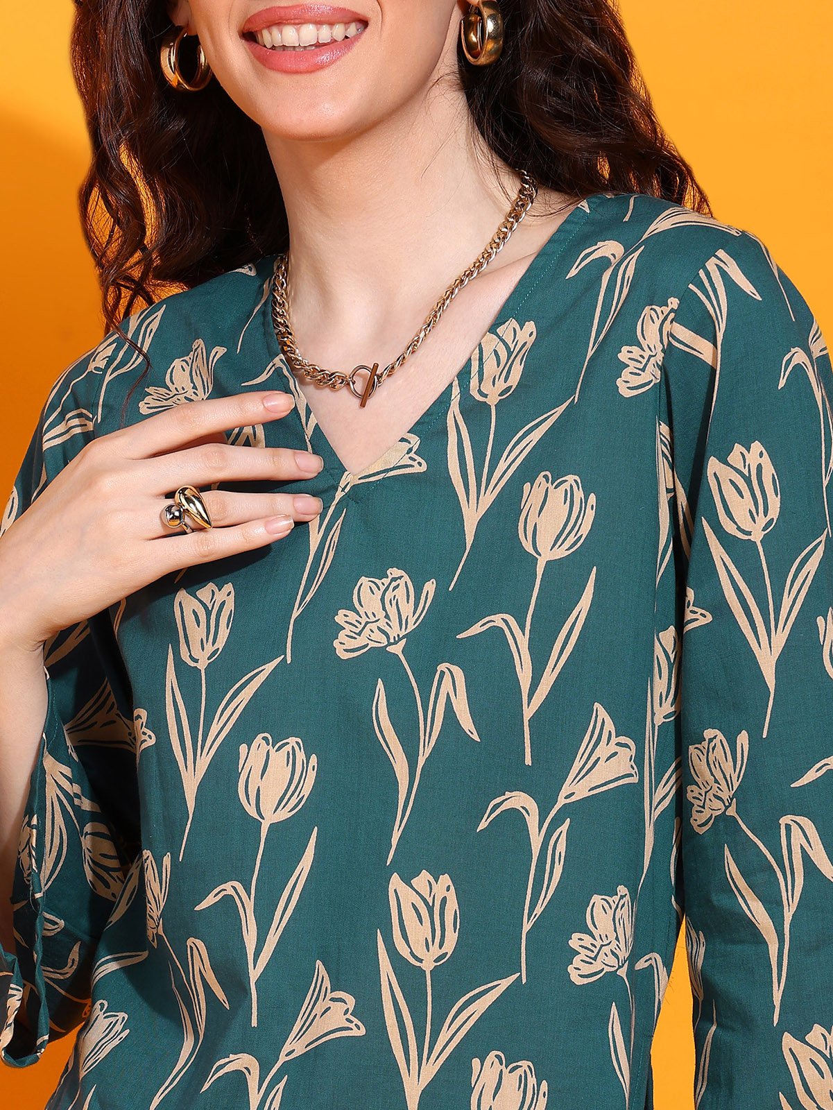 Say hello to your new wardrobe crush — Tulip Bagh, a Bell Sleev-style kurti top that's made to match your everyday vibe.