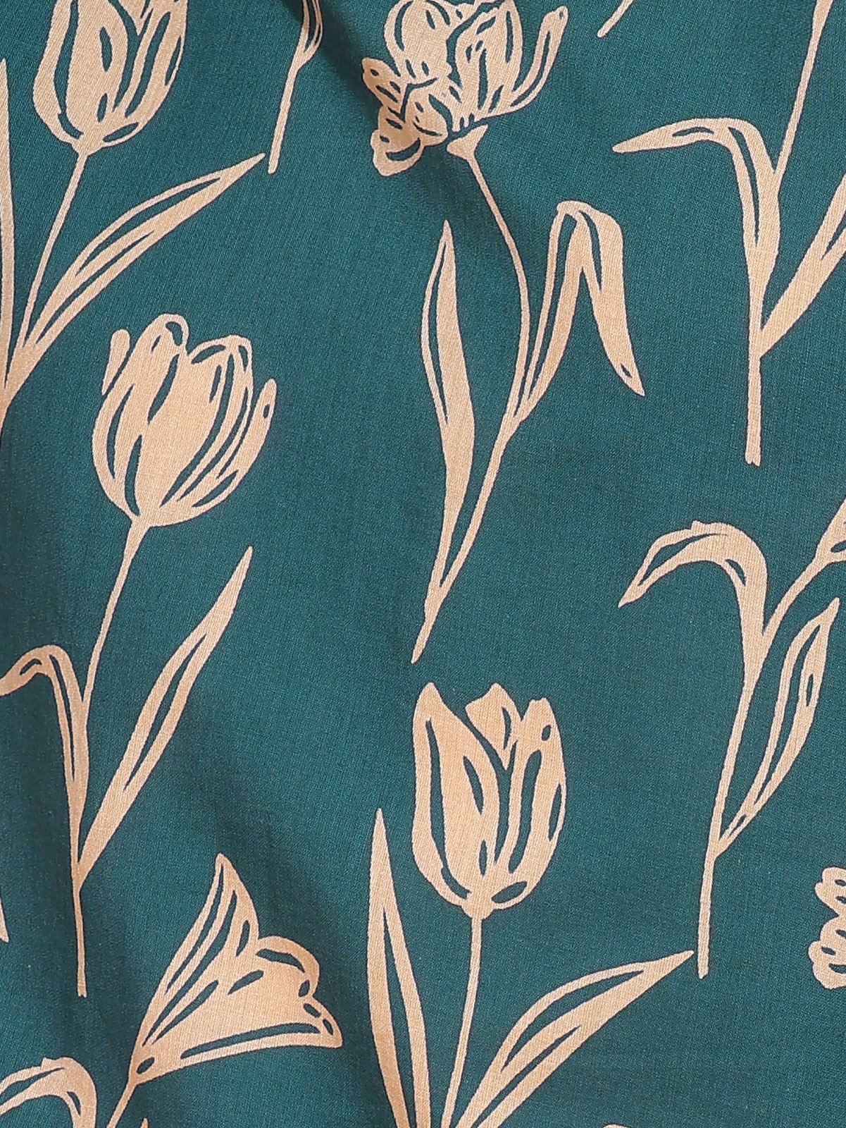 Color: Green with White Tulip Print