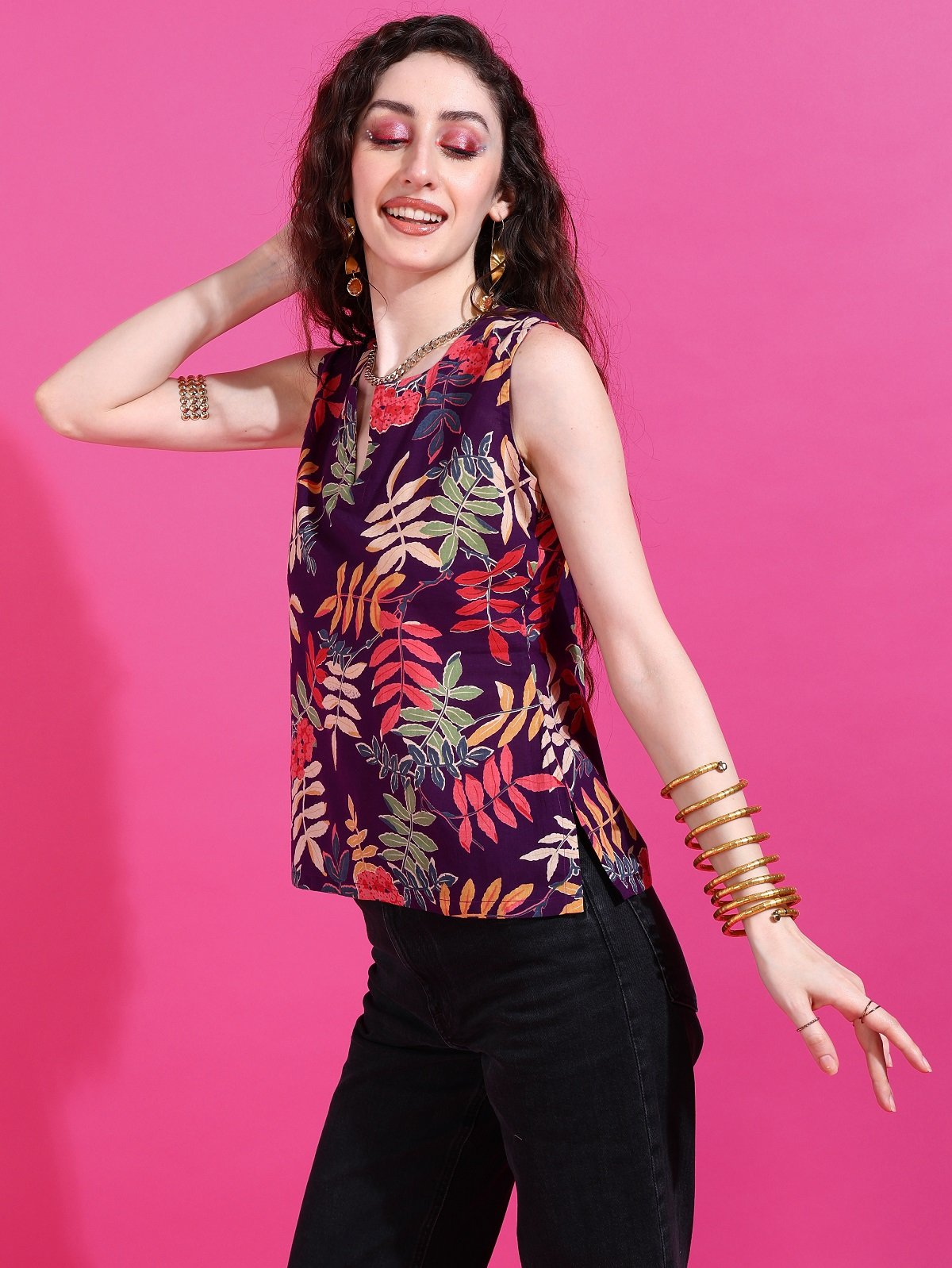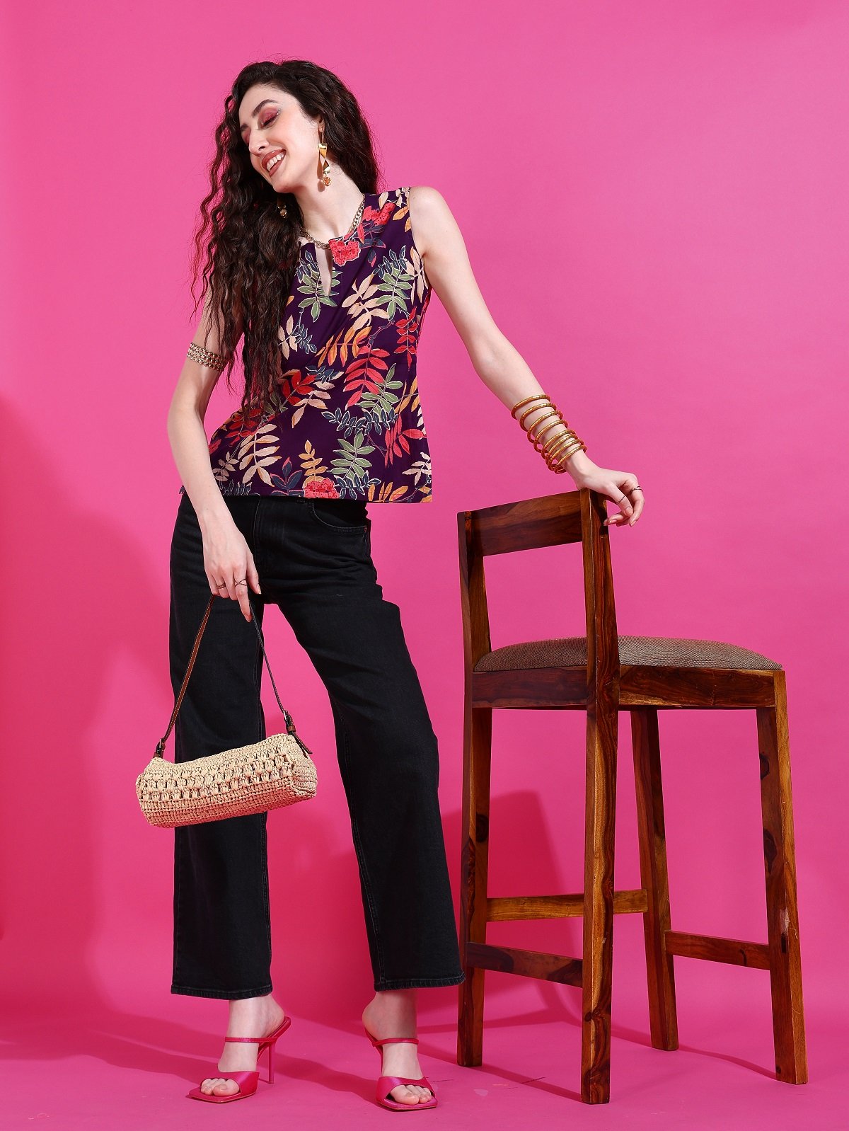 Fresh, floral, and fabulously flattering — the Vanmohini Tank Top is a vibrant wardrobe essential that effortlessly blends comfort with bold style. Its structured fit and tropical-inspired print make it ideal for both casual days and festive evenings.