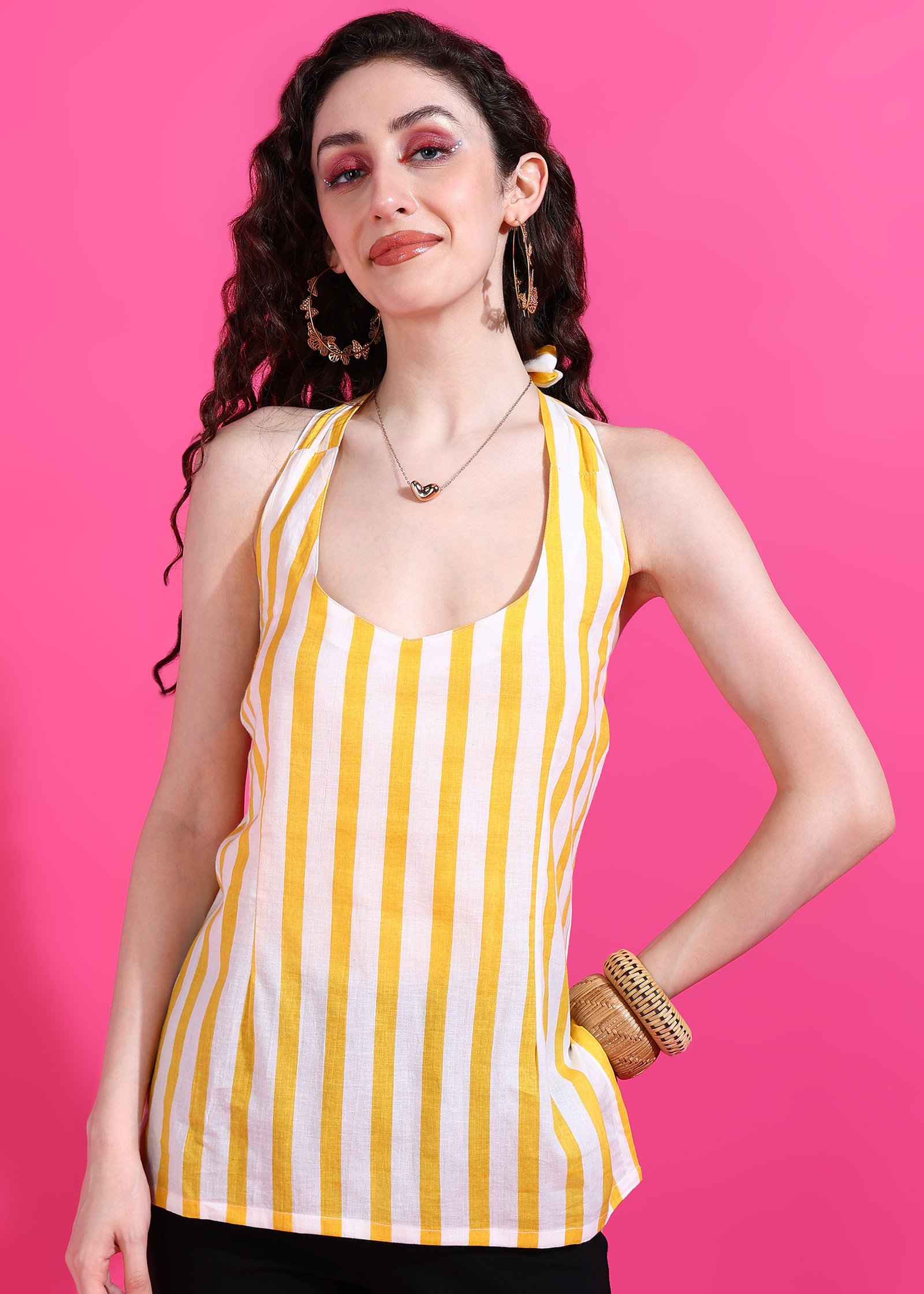 Shop the Senyora Yellow & White Striped Halter Neck Top today and shine wherever you go!