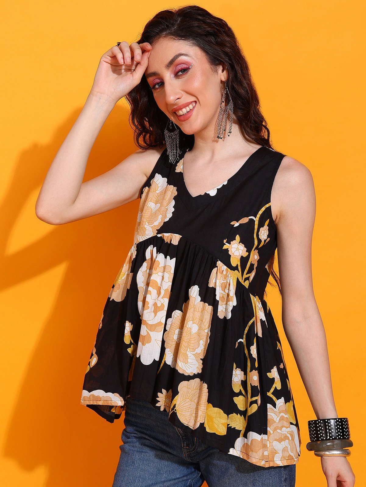 Add a touch of sophistication to your ethnic wardrobe with the Kohira Sleeveless Peplum Top from Senyora. Featuring a tailored peplum silhouette and a sleeveless design, this top blends contemporary style with traditional charm.