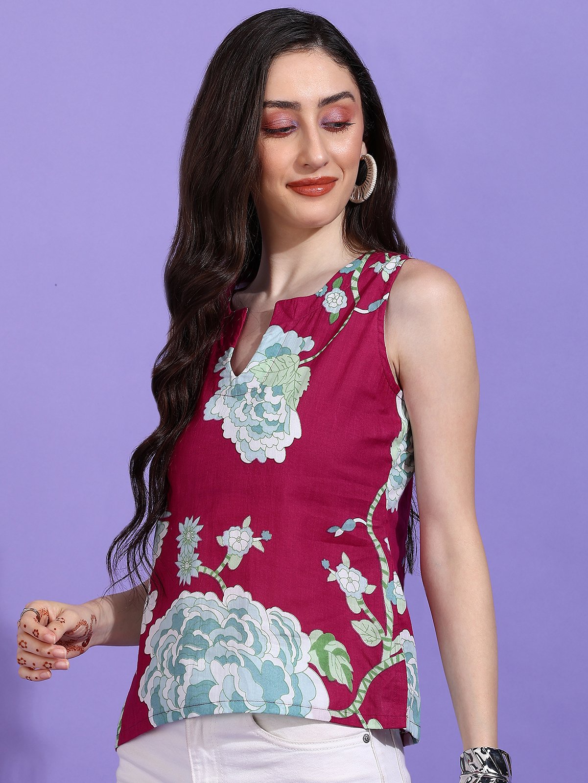 Shop the Senyora Rubira Magenta & Teal Floral Print Sleeveless Tank Top today and infuse your everyday wardrobe with dramatic color!