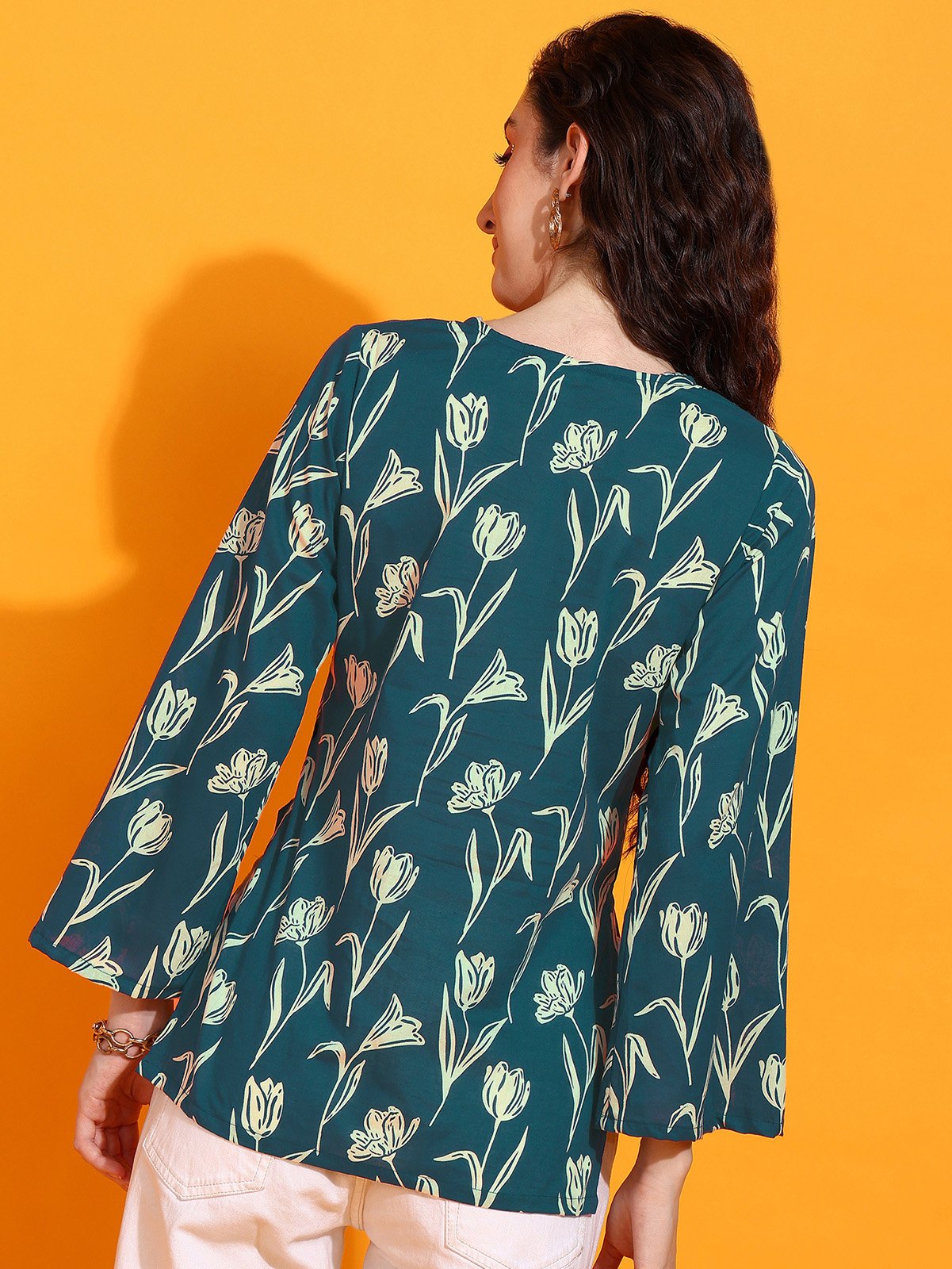 Say hello to your new wardrobe crush — Tulip Bagh, a Bell Sleev-style kurti top that's made to match your everyday vibe.
