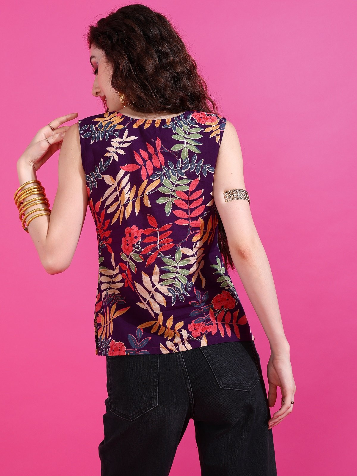Fresh, floral, and fabulously flattering — the Vanmohini Tank Top is a vibrant wardrobe essential that effortlessly blends comfort with bold style. Its structured fit and tropical-inspired print make it ideal for both casual days and festive evenings.