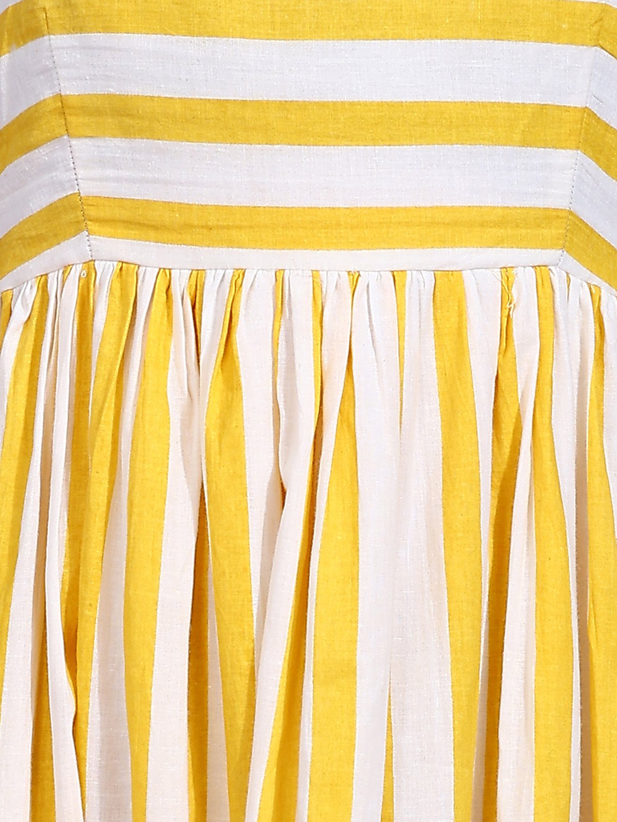 Vibrant Stripe Pattern: The dress features a playful yet sophisticated yellow and white striped pattern. The vertical stripes on the skirt visually elongate your silhouette, creating a graceful and flattering look.